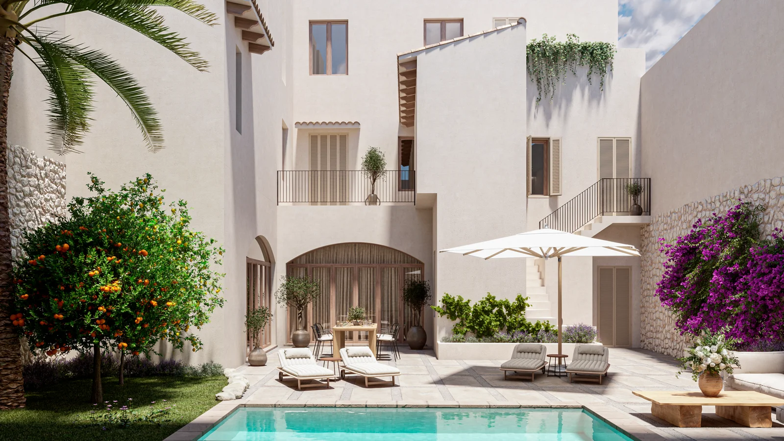 - Großer zentraler Innenhof, das Herzstück des Hauses
